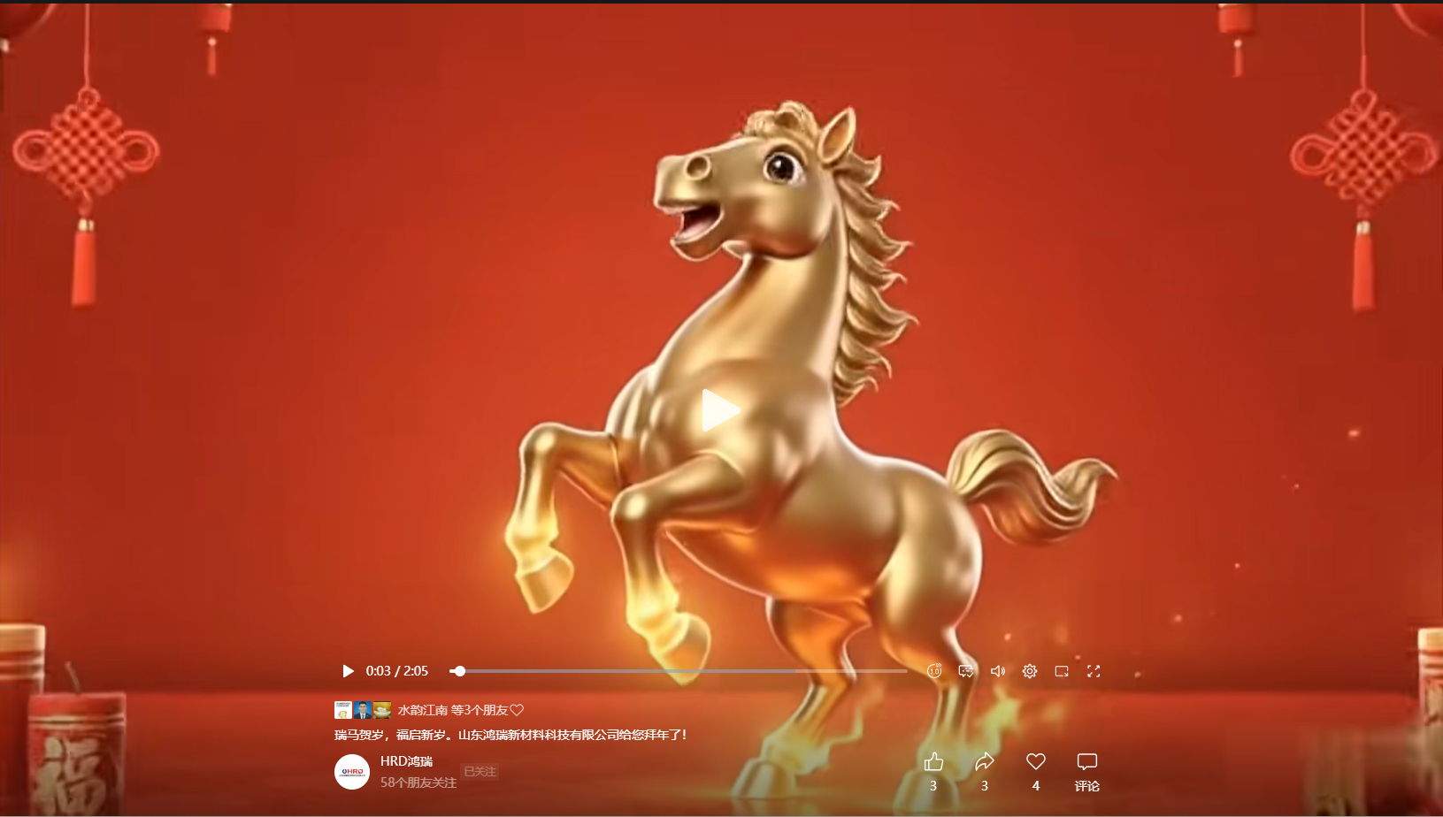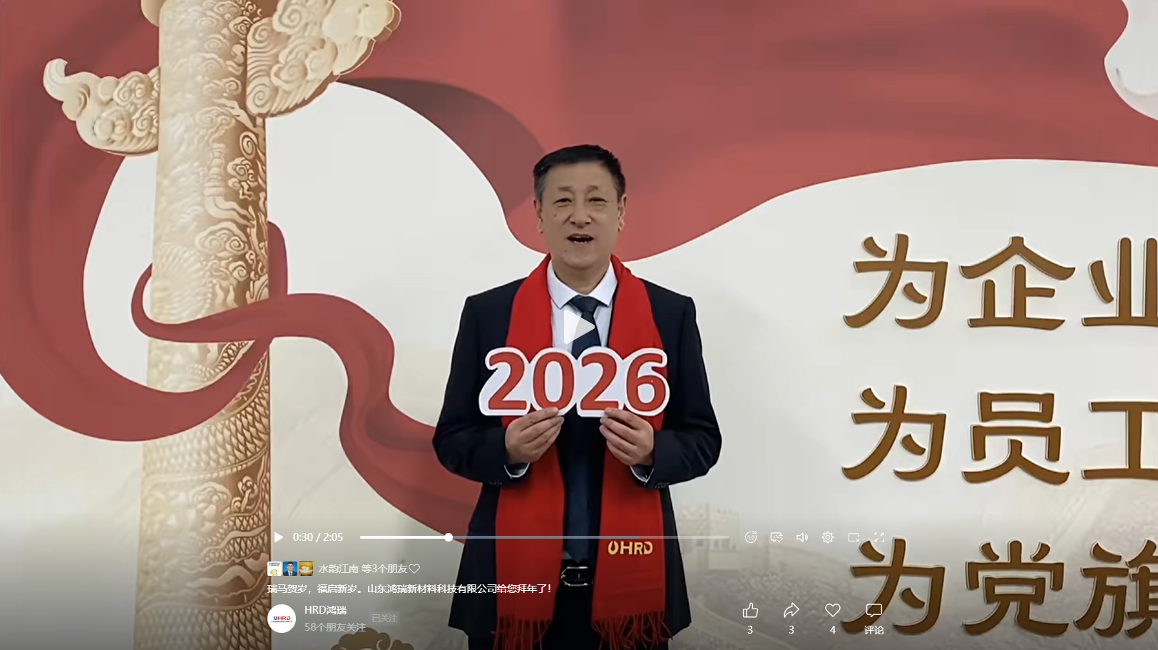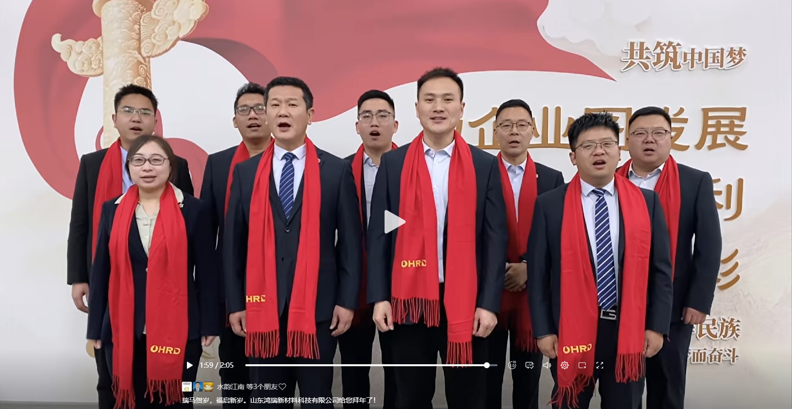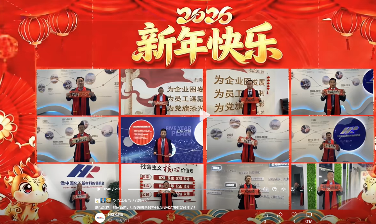 山東鴻瑞新材料科技有限公司董事長和總經理攜全體員工向一直關心、支持和幫助公司發展的各位領導和新老客戶拜年!